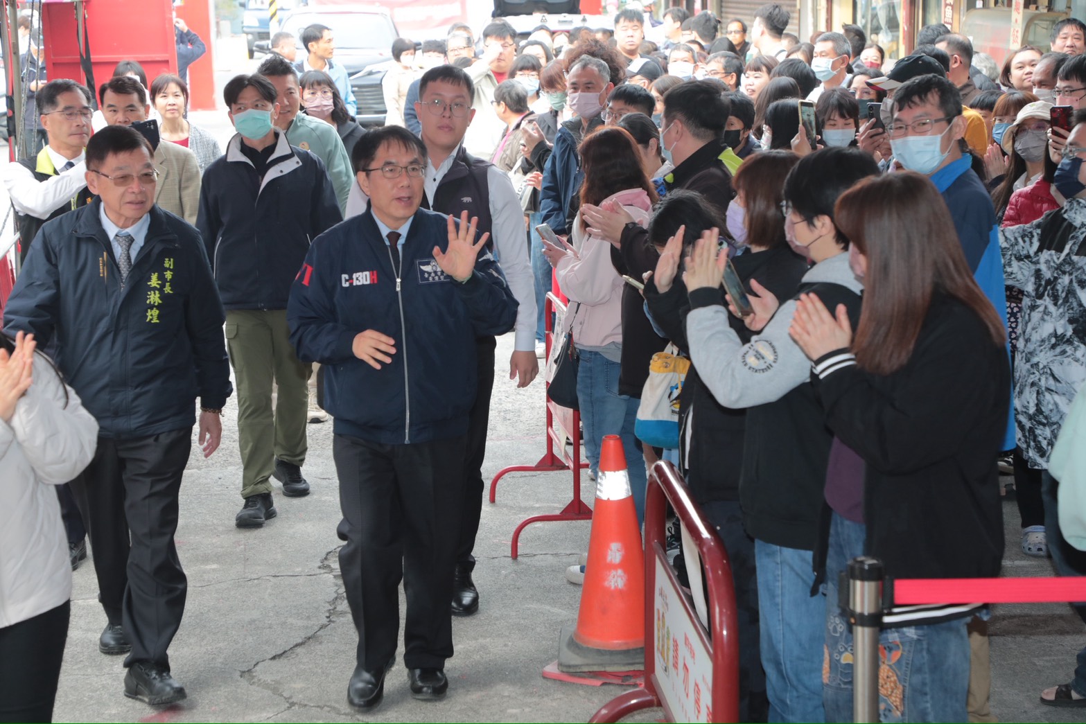大年初一(17日)一早,台南市長黃偉哲展開新春走春祈福行程,首站前往新化朝天宮參香祈福,向市民朋友拜年問好。廟埕一早便聚集許多排隊等待小紅包的民眾,黃偉哲抵達後向民眾拜年,祝福大家新的一年平安順遂、闔家安康,現場年節氣氛熱鬧喜氣洋洋。