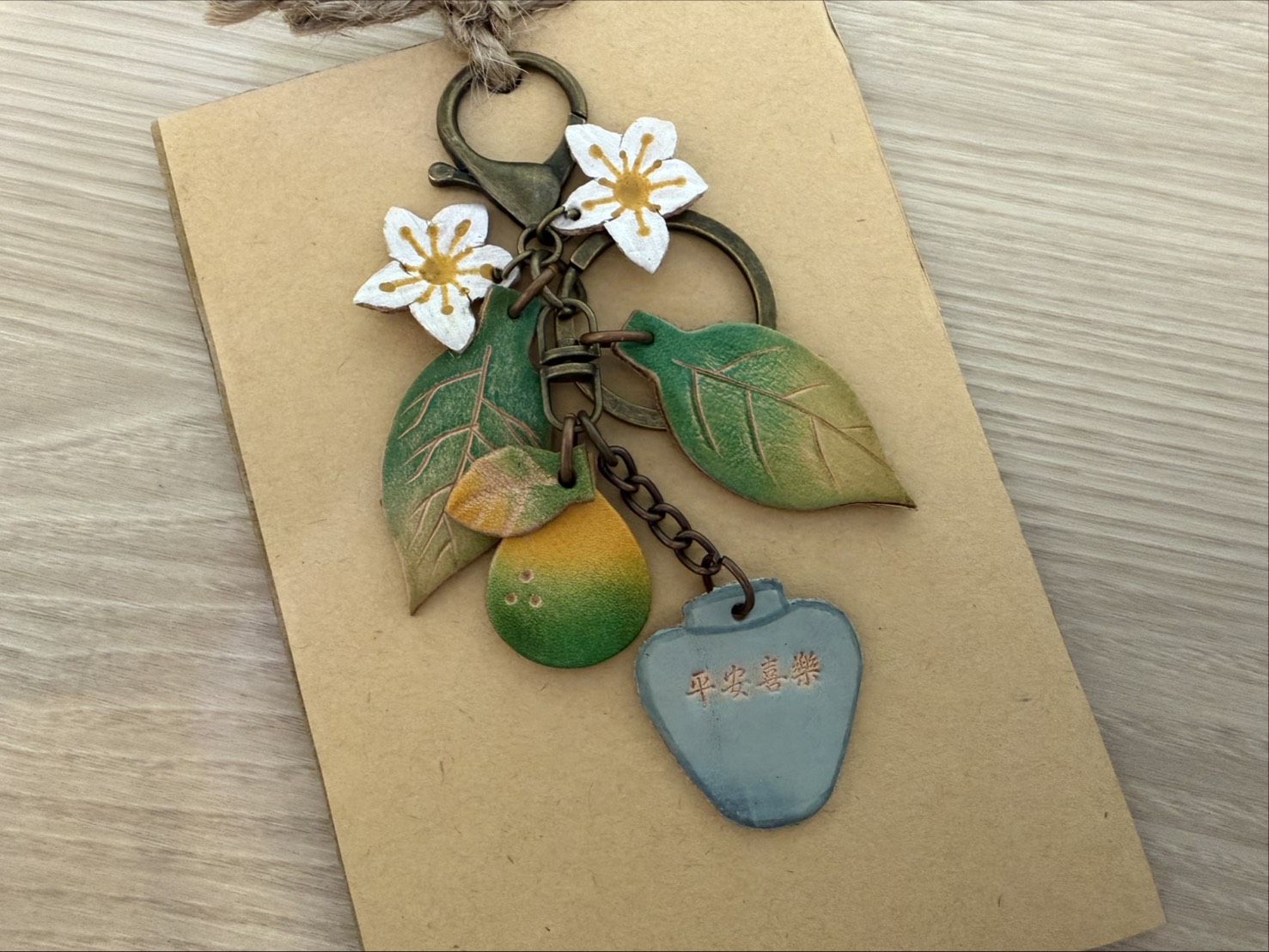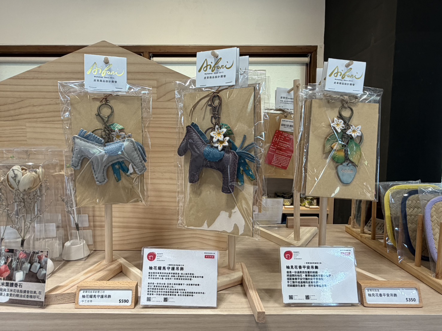 此次上架商品於總爺小舖限定販售,由愛寶倪皮革創意工坊推出「柚見花香平安吊飾」,以盛開的柚花、青翠柚葉與可愛小柚子為設計元素,結合象徵平安與守護的安平壺造型,將祝福隨身相伴,平安帶進日常。另一款「柚花耀馬守護吊飾」,奔放躍動的馬匹,搭配象徵潔淨吉祥的柚花與寓意守護的倒風內海故事館V型箭鏃設計,願大家新的一年生活安定、好運相隨。誠摯邀請市民好友前來參觀選購,一同支持夥伴的手作藝品!